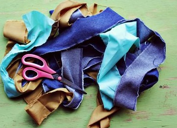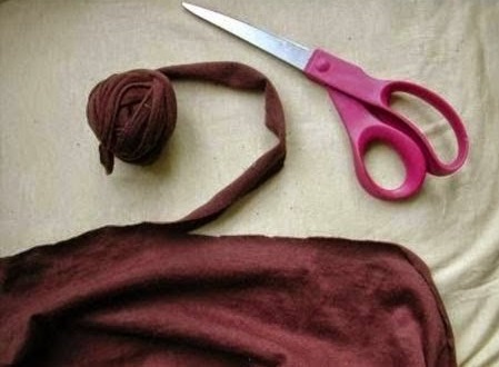 Cut all the old t-shirts and any other old clothing you may have, into stripes 2-3 cm wide.